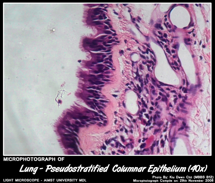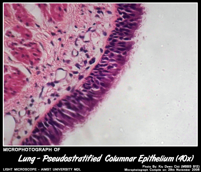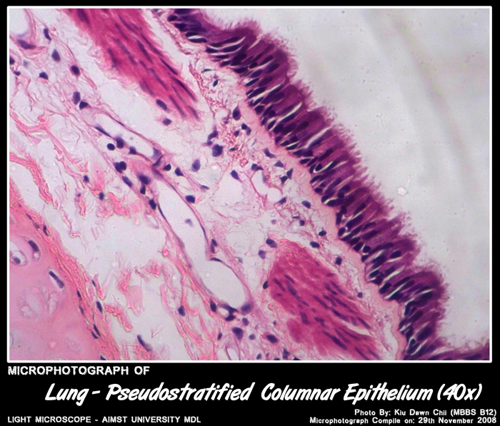 Epithelium – Simple columnar with cilia & goblet cells.